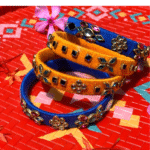 Be the first to review “Handmade Blue & Orange Silk Thread Bangles – Set of 6 with Colorful Stone Embellishments”